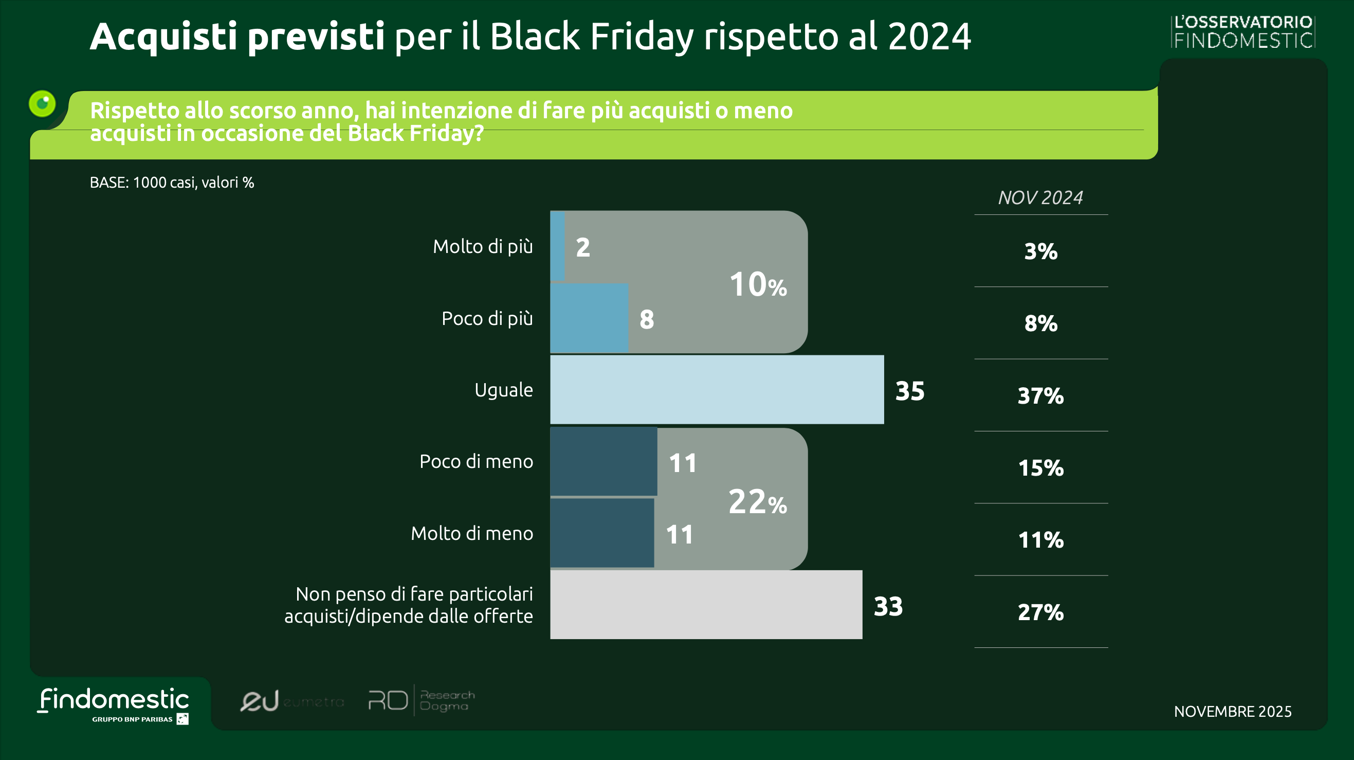 Secondo l'Osservatorio Findomestic di novembre, italiani più tiepidi verso il Black Friday e aumentano gli "opportunisti" pronti a comprare solo in caso di offerte davvero vantaggiose.