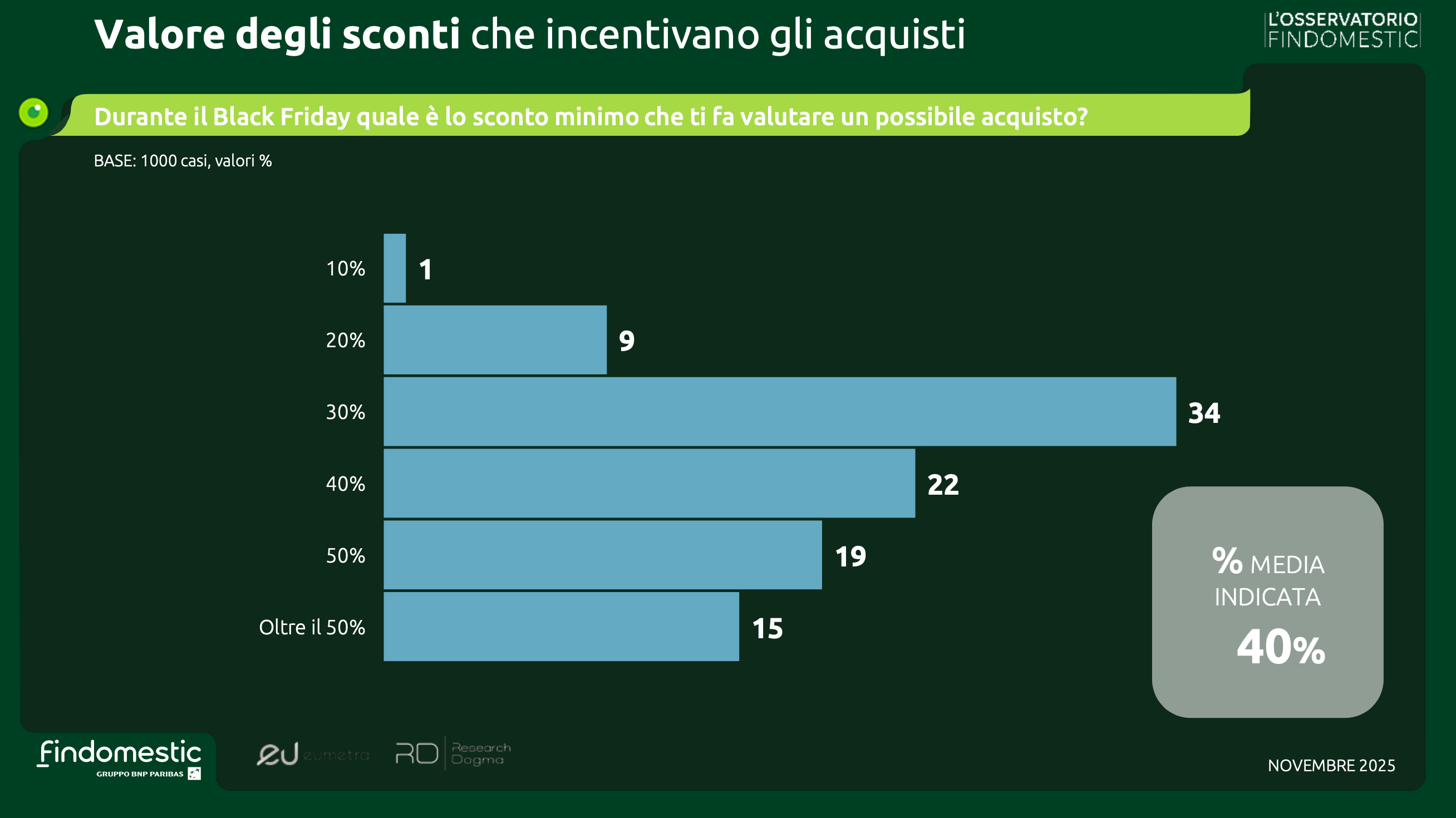 Le aspettative sull’entità degli sconti sono molto alte: oltre la metà dei consumatori (56%) ritiene interessante solo uno sconto minimo tra il 30% e il 40%, mentre il 34% punta addirittura al 50% e oltre.