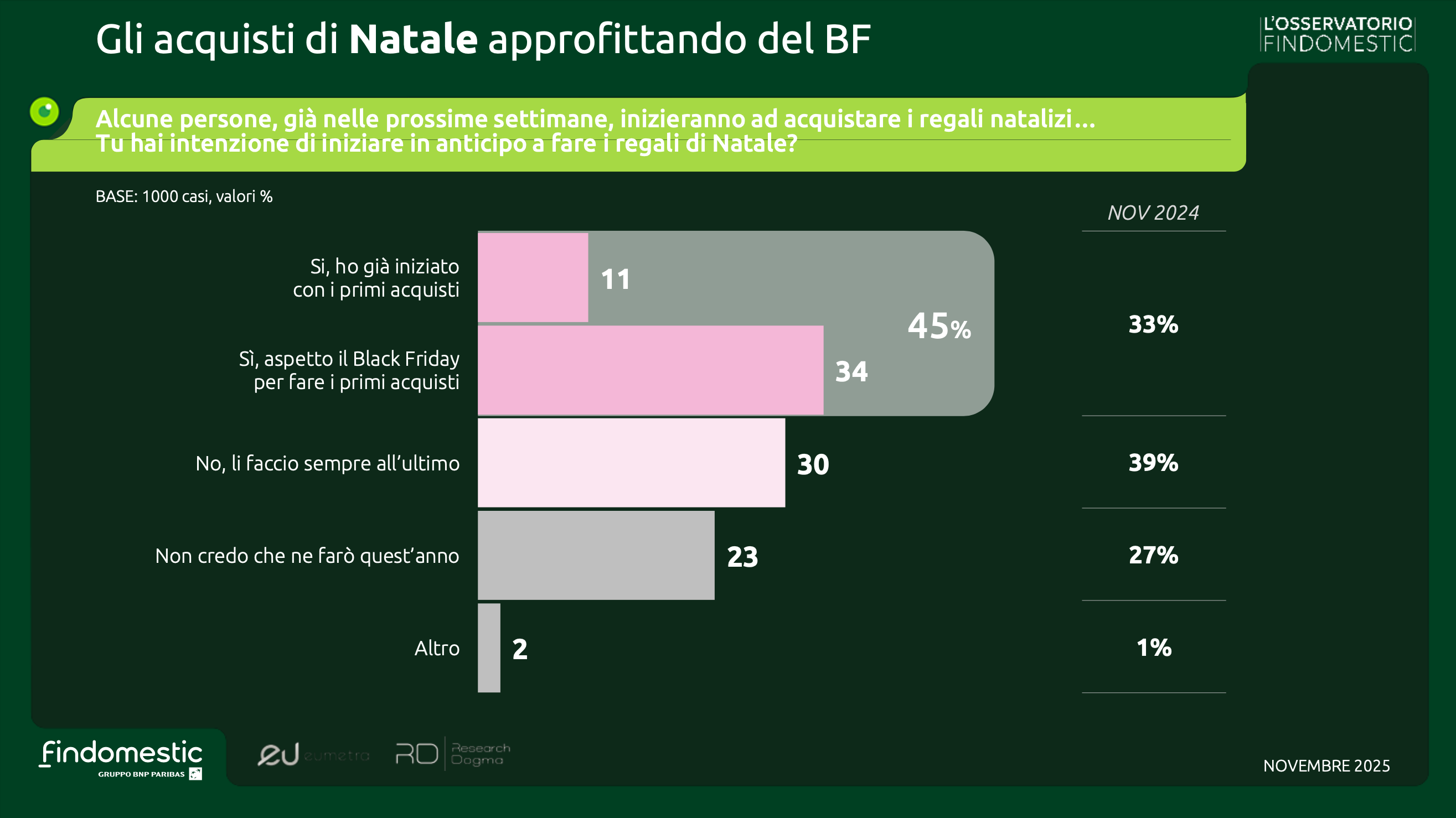 Secondo il focus dell’Osservatorio mensile Findomestic molti più italiani rispetto al 2024 (45% contro 33%) lo sfrutteranno l’evento promozionale per i regali di Natale.