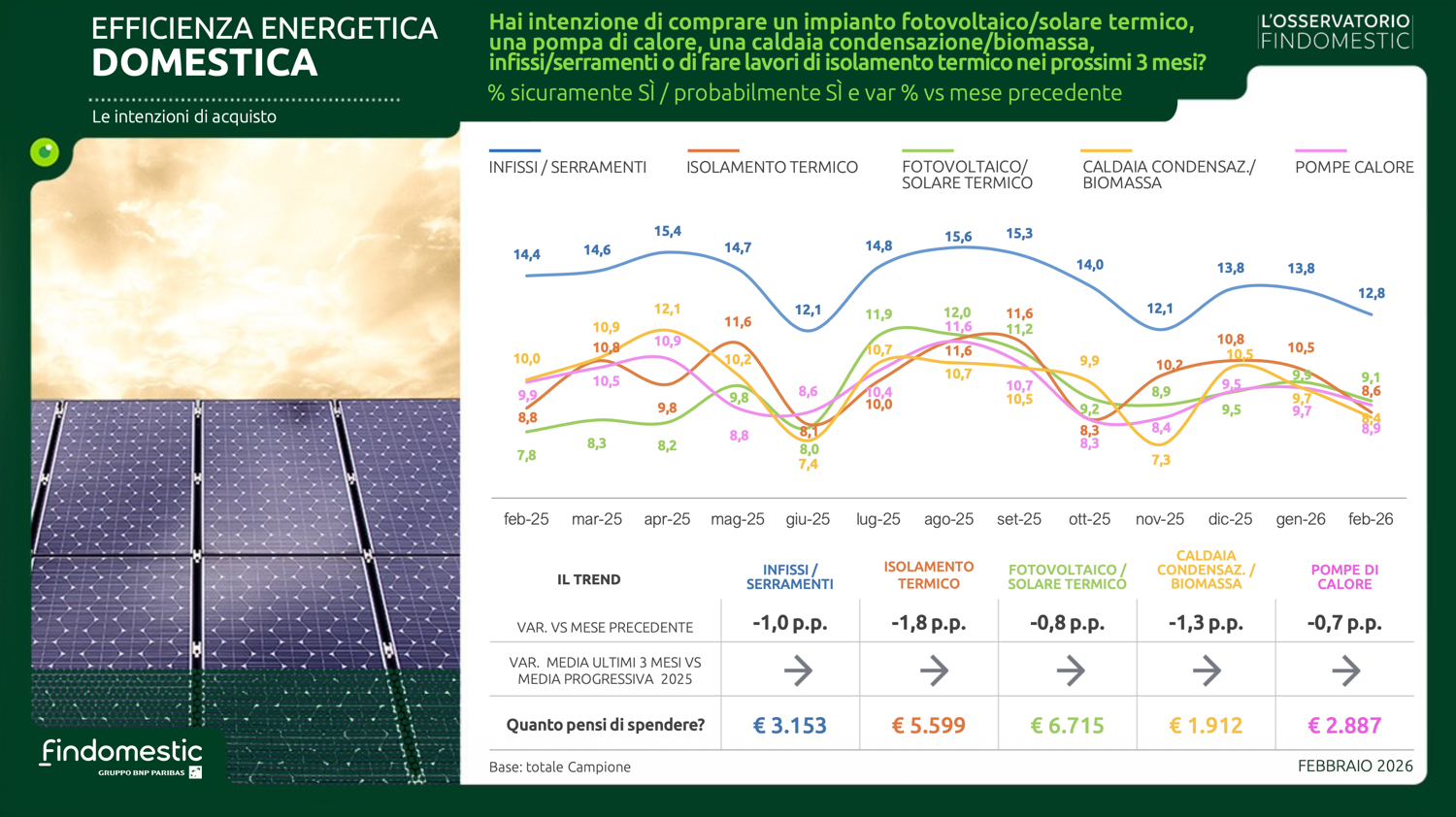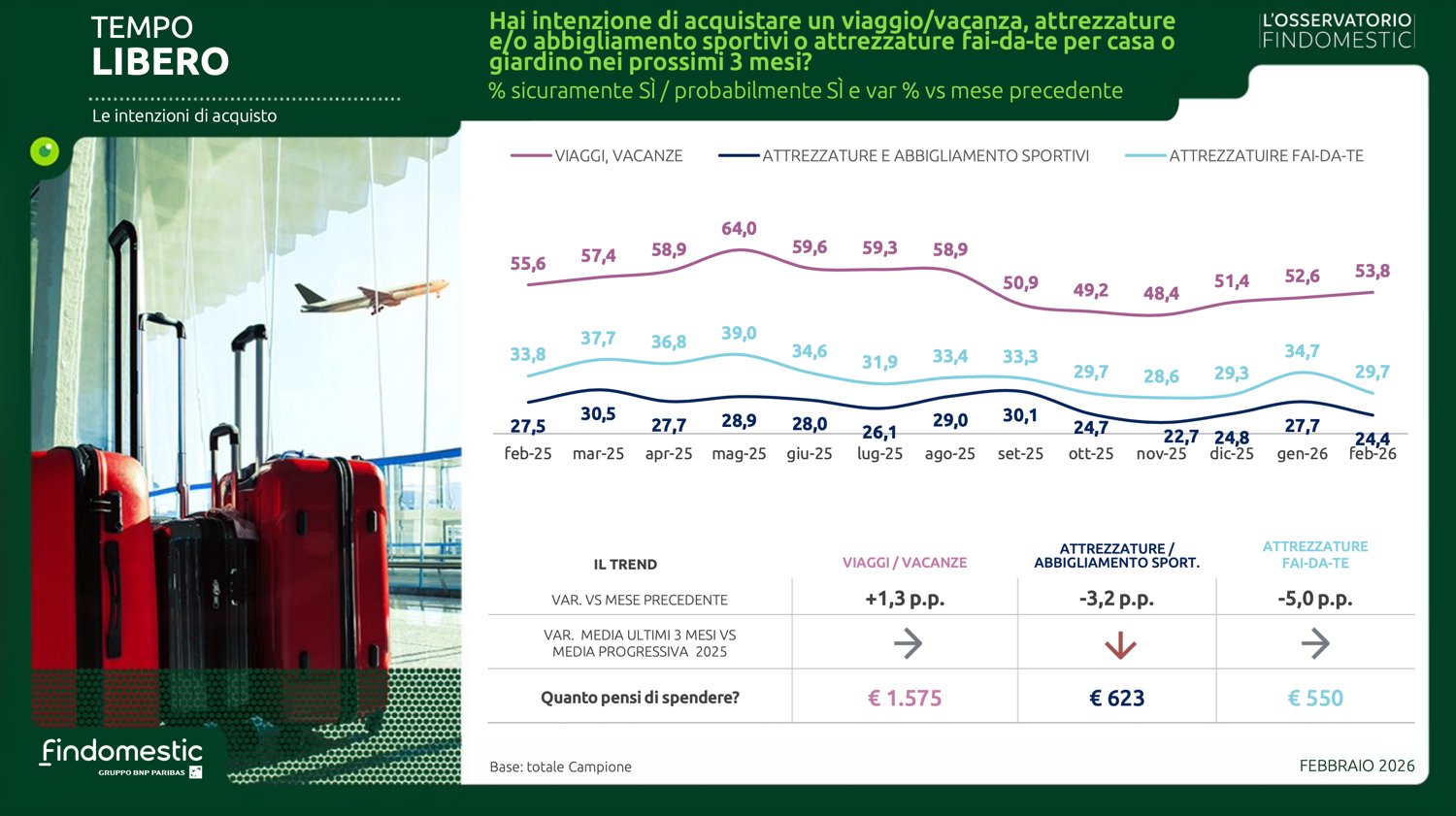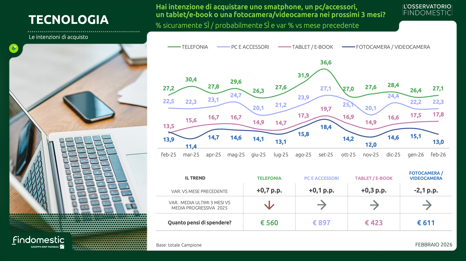 Le intenzioni d’acquisto degli italiani tornano a diminuire: a febbraio l’indice monitorato dall’Osservatorio mensile Findomestic segna un calo del 5,7%, riportandosi sui livelli autunnali dopo la breve ripresa di fine anno. Un arretramento che si inserisce in un contesto nel quale quasi quattro famiglie su dieci continuano a ritenere la propria situazione economica “abbastanza o molto problematica”.