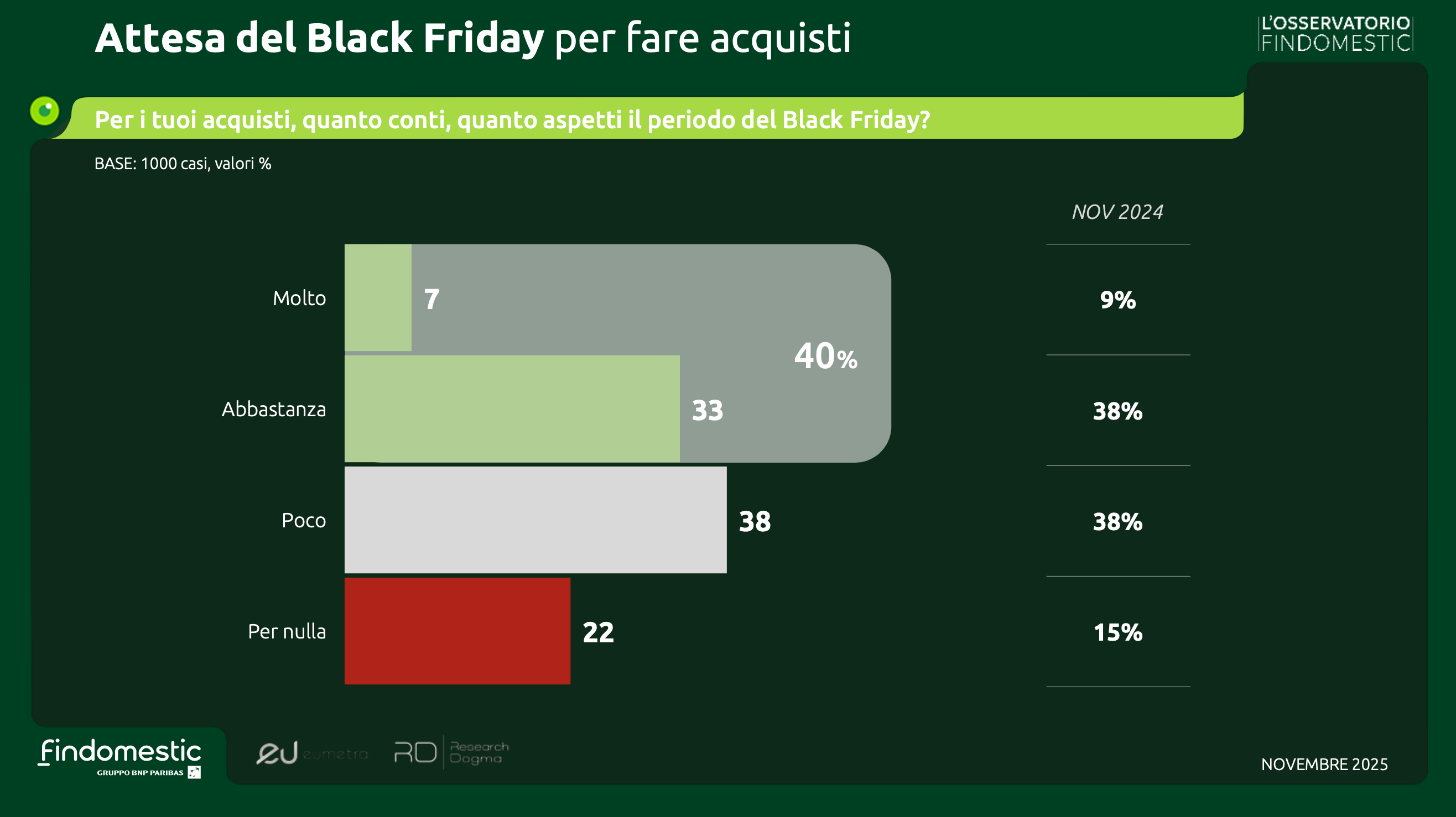 Secondo l'Osservatorio Findomestic di novembre, italiani più tiepidi verso il Black Friday e aumentano gli "opportunisti" pronti a comprare solo in caso di offerte davvero vantaggiose.